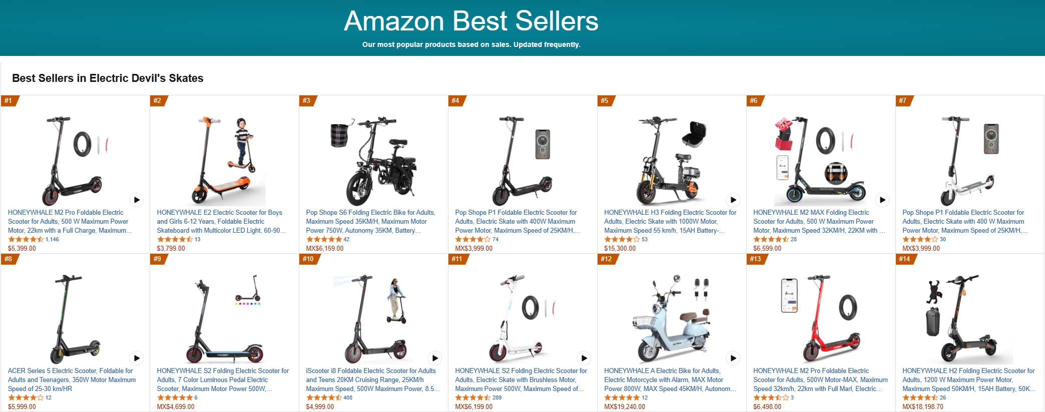 "Honey"象征我们对用户体验如蜂蜜般细腻的追求,"Whale"则彰显产品如深海巨鲸般强悍的续航动力。无论是城市街道还是崎岖小路,都能陪伴用户畅快前行,探索未知。目前HONEYWHALE已成为拉美电动滑板车行业的领军品牌,连续数年蝉联销量冠军。线上覆盖Amazon、Mercado Libre等12个电商平台,线下30家以上品牌门店进驻墨西哥城、瓜达拉哈拉等核心商圈,成为当地用户首选的出行品牌。如今,HONEYWHALE的足迹已遍布墨西哥、欧洲、新西兰等多个国家和地区,以卓越的产品品质和贴心的服务,赢得了全球用户的广泛认可与信赖。